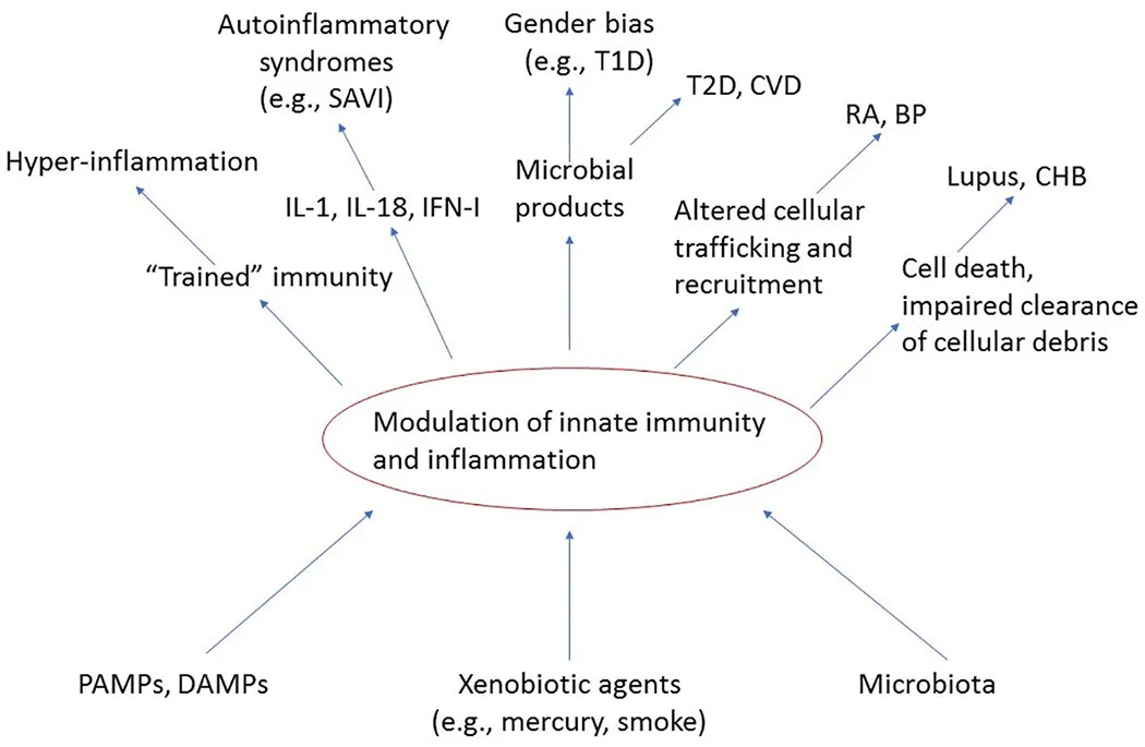 Pathogen-Associated Molecules Patterns (PAMPs) - from pathogens (like LPS and Flagellin) as well as various xenobiotic agents (e.g., mercury, cigarette smoke, glyphosate and silica) R