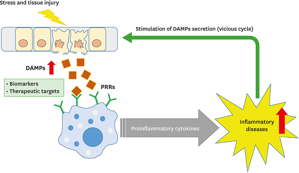 Damage/Danger-Associated Molecular Patterns (DAMPs) - released from stressed and damaged cells
