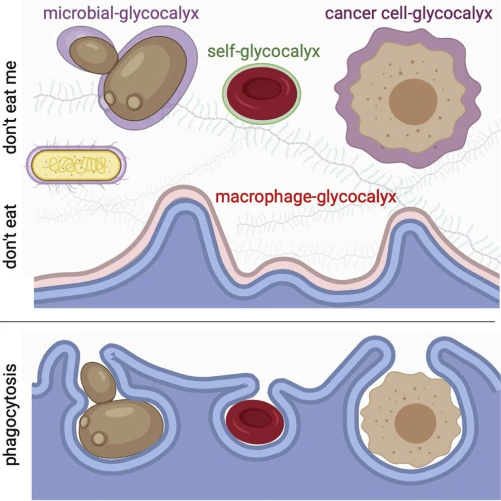 Having this glycocalyx layer on cancer cells and microbes makes it important to have a working innate immune system that can release proteases and cleavage enzymes (like HA-ase and MMPs) that can break down the glycocalyx.