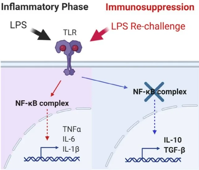 Endotoxin Tolerance of macrophages are macrophages’ way of keeping inflammation at bay (IL-10, TGFb) as the immune system is trying is trying to protect from excessive damage while fighting (pushing macrophages into a pseudo-M2 state). R