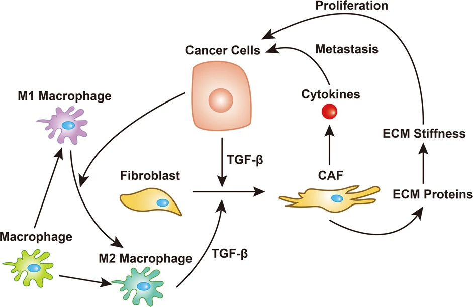 Being stuck in Endotoxin Tolerance (chronic M2 macrophage state) contributes to ECM stiffness. R