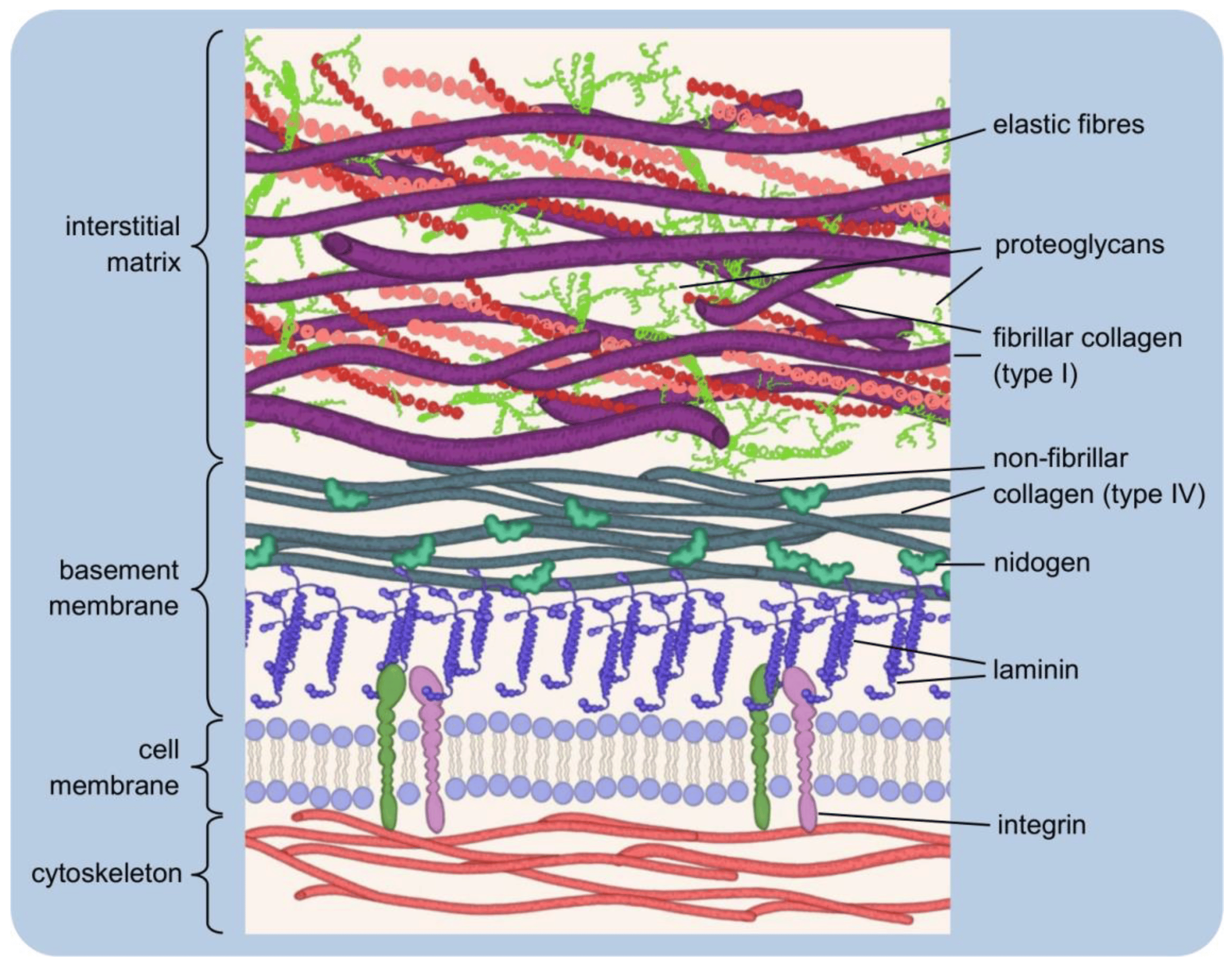 This scaffolding helps support and give structure, allowing the cells to climb, connect, and talk to each other, while allowing them to move around and grow properly.