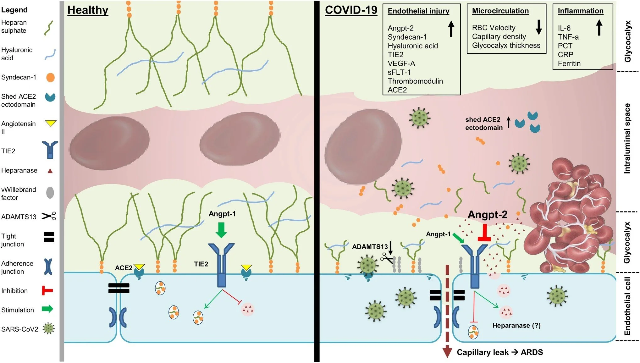 The biomarkers I've been seeing for this are when inflammatory enzymes cleave (cut like scissors) the glycocalyx and are found freely in the blood.
