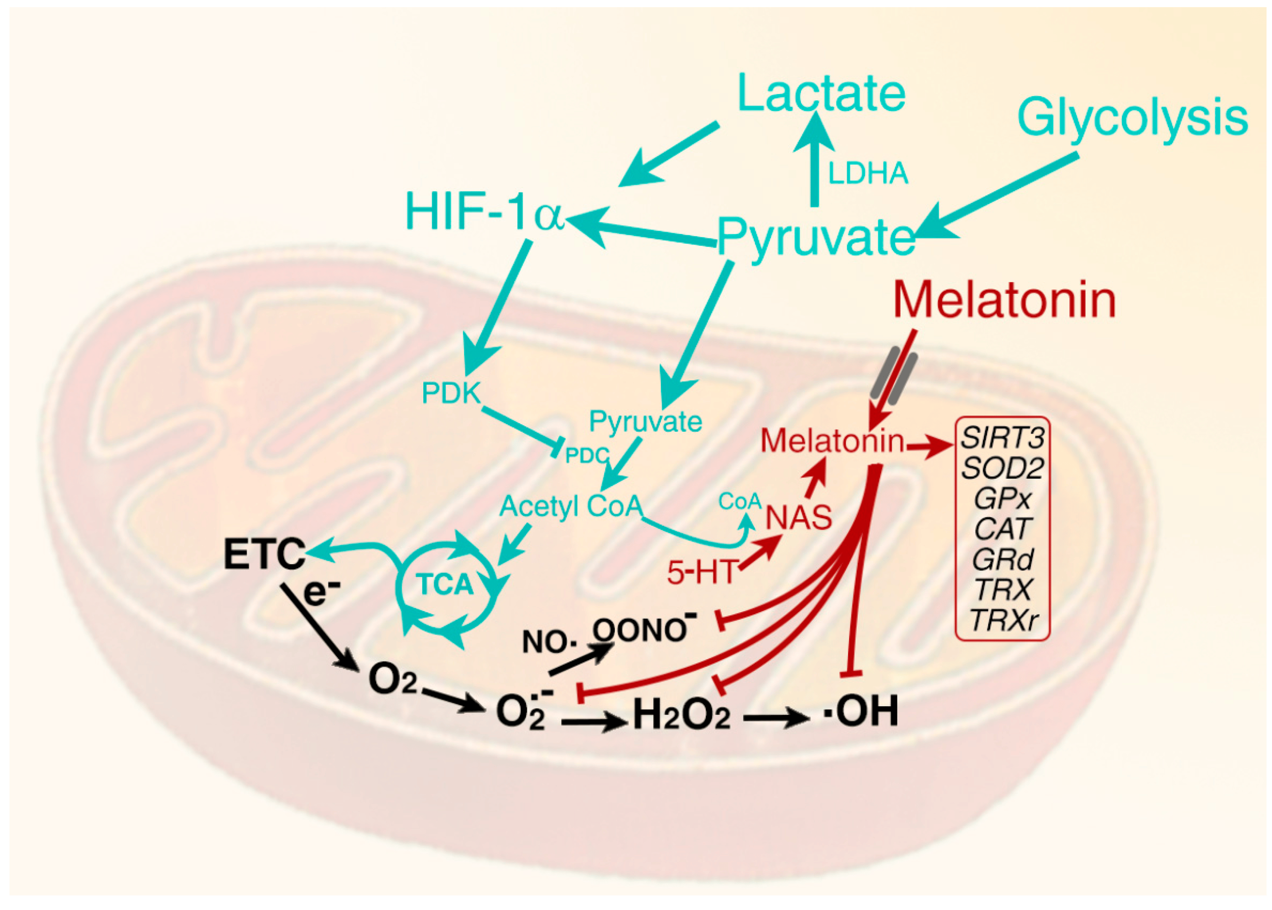 So loss of being able to create melatonin, creates an even worse redox balance, favorable towards being pro-oxidized and thus stuck in an inflamed, hypoxic state all the time. R