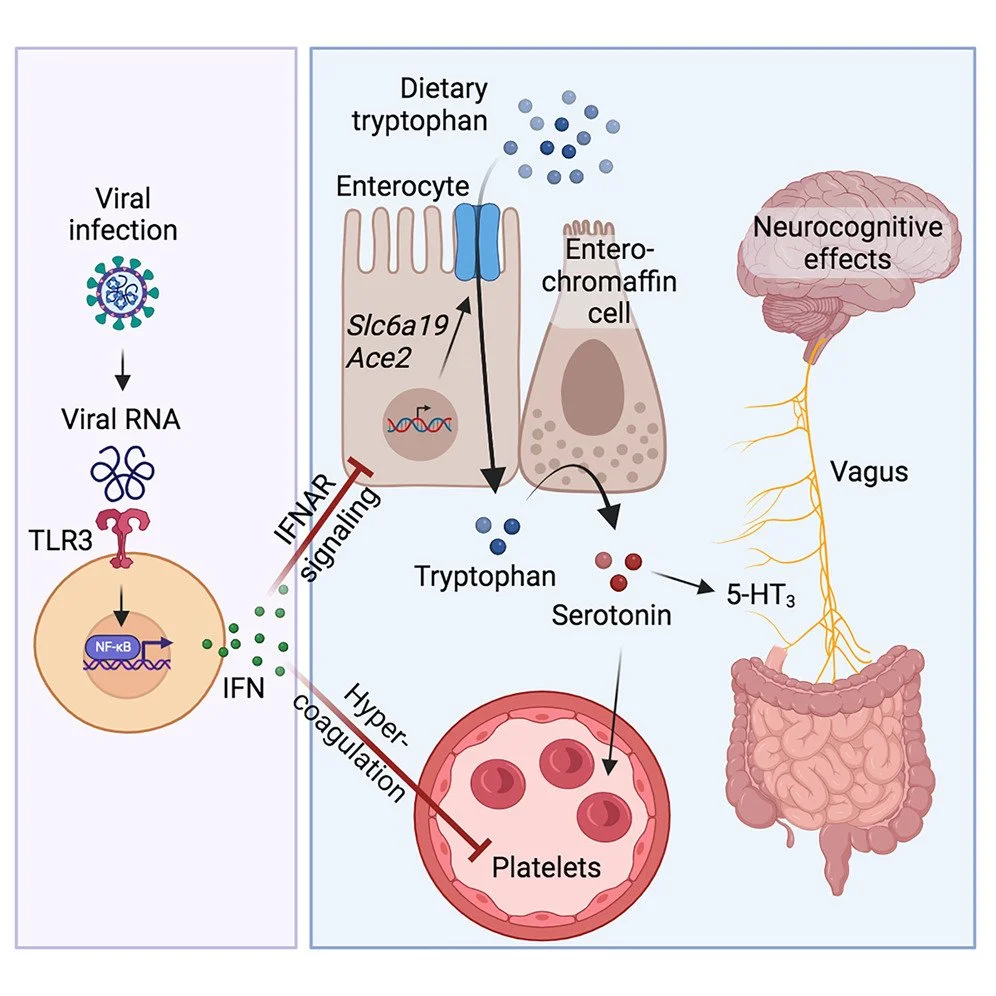 Chronic activation of IFN can cause enterocytes to properly mishandle tryptophan via a pathway called Indoleamine 2,3-Dioxygenase (IDO). R