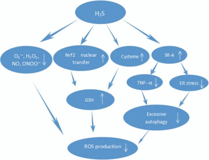H2s can directly bind to Reactive Oxygen Species (ROS) and Reactive Nitrogen Species (RNS) and help with redox status in the endothelium. R